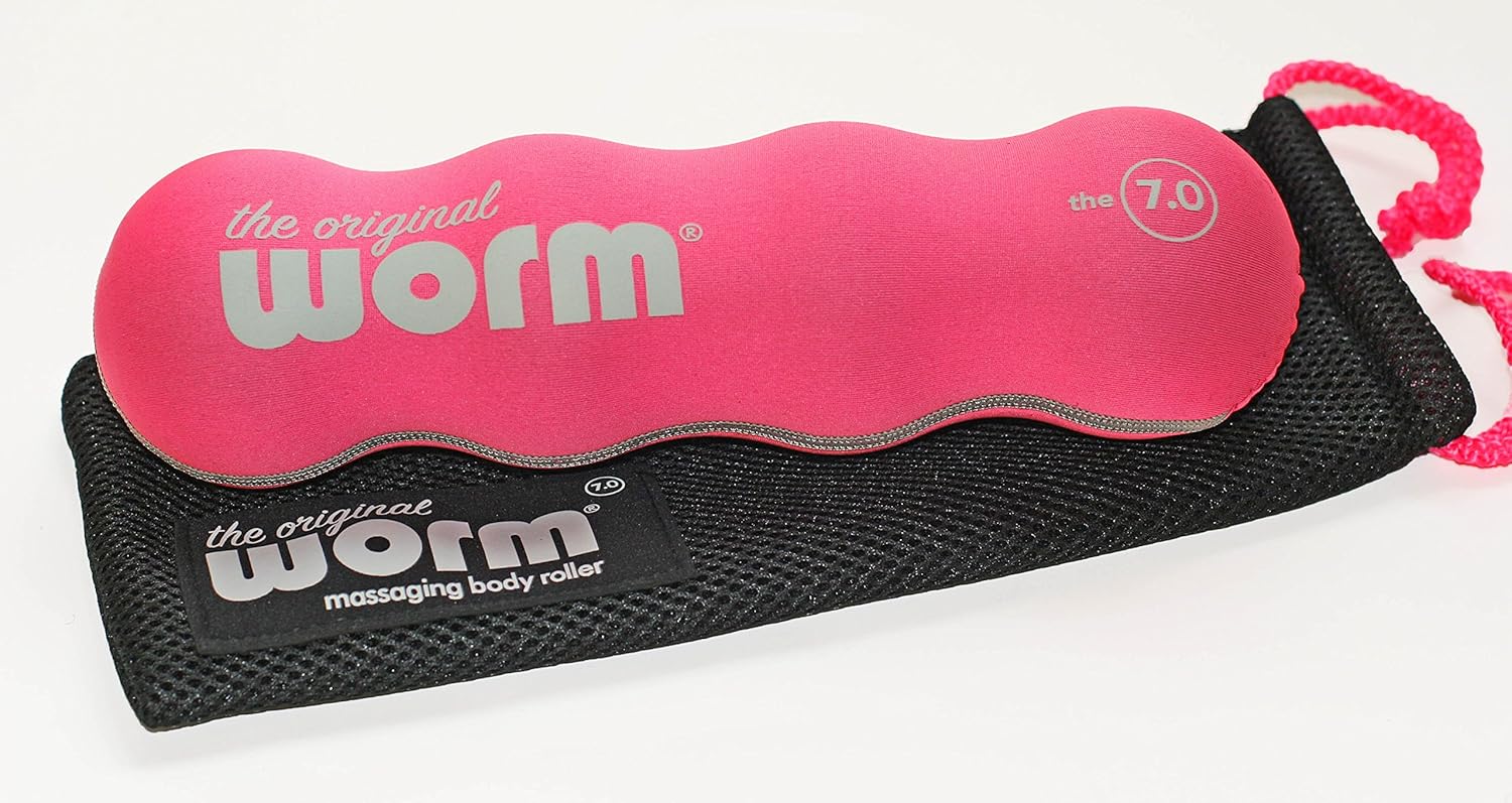 Made out of solid and pliable rubber balls and encased in a durable, hand-washable neoprene covering, the Original Worm can roll away stubborn knots and tension in minutes. This roller combines the benefits of therapy balls and a foam roller to relieve stiffness, pain, and stress in muscles and joints. Targets back, hips, glutes, IT band, shins, calves, thighs, neck, feet. Great before and after yoga practice, workouts and running.