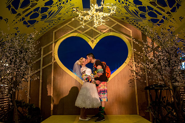 Last year alone, nearly 150 couples were married at Electric Daisy Carnival (EDC) in Las Vegas. With two chapels to choose from, “Nature” and “Future,” couples can enjoy an intimate ceremony with the aesthetic of their preference.