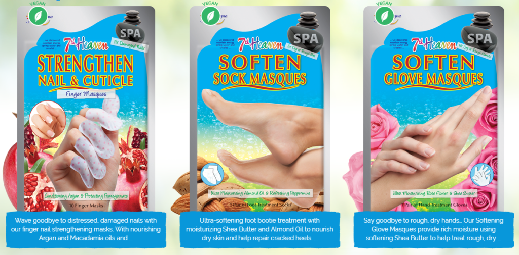 Lotions, oils, creams they are great, but usually 30 seconds after application your hands are back in the trenches. Or you’ve not had a moment to even think about where you put the lotion much less put it on! Remedy dry chapped hands in just 10 minutes with the 7th Heaven Glove Mask. Slip on the gloves which are already full of lotion made with shea butter, soybeans and pressed roses. Take a mere 5 -7 minutes to yourself and viola, soft hands. The lotion absorbs quickly with no residue so I was able to put it on before bed and days later still felt the affects.