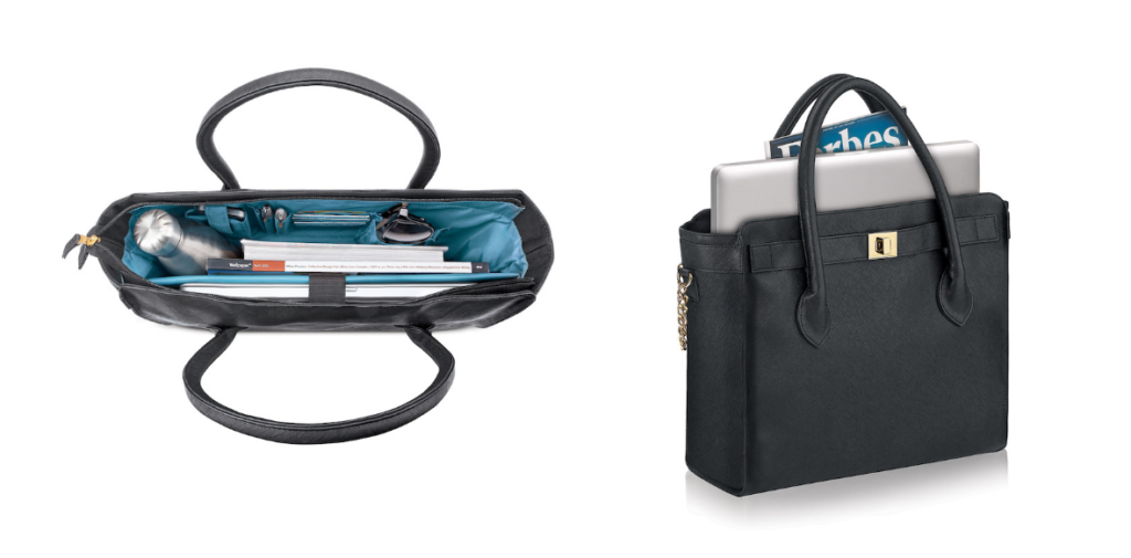Occasionally I will have to be on the go and carry my computer with me. Mostly with the kids I tuck it into the aforementioned college backpack. But when meeting other professionals I do want to look like them, not a mom. The Madison Tote makes that happen.