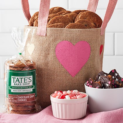 If you are looking for a sweet treat that has a little variety, then you'd love the cute Valentine's Day Tote from Tate's Bake Shop. It cost's only $25 and it includes candy, cookies and some really tasty holiday-themed chocolate bark.