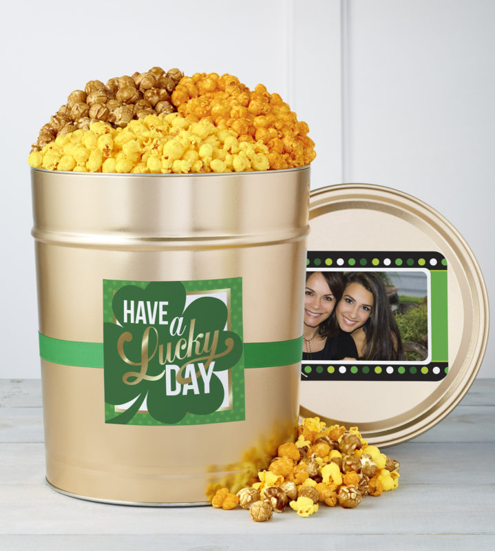 The Popcorn Factory Have a Lucky Day Popcorn Tin comes with amazingly 56 cups of fresh popcorn Butter, Cheese and Caramel gourmet popcorn is a great way to celebrate St. Patrick’s Day with friends, family and coworkers. It is so yummy that this is the kind of gift that you get with the intention of sharing, but don’t go out of your way to make it available to too many people. They run for around $40 and ship quickly and easily all over the country.