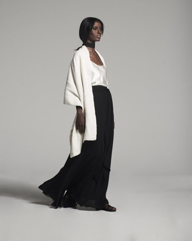 JA: A lot of it is listening to the material, listening to the culture, listening to the people. What works on their looms? What’s the constraint of that loom? And then how can we incorporate that into clothes that are beautiful and elegant. And then how can we compliment the hand woven textiles with pieces that are more liquid and more delicate and drape in a certain way. How can we contrast the structural element of the loom textiles with the complimentary collection pieces? That’s how we think about it. It’s very intuitive.